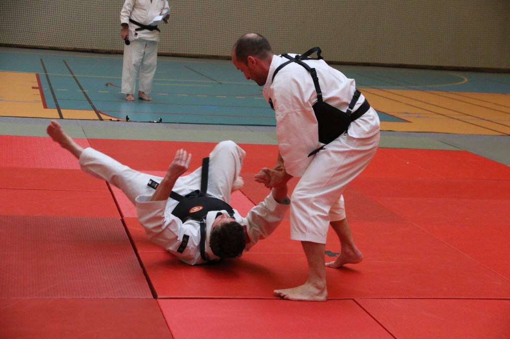 au programme, Travail technique autour de la notion de Sen (gestion du temps dans la défense), travail des technique Juho et Goho et travail sur les Kyusho pour les grades avancés)
